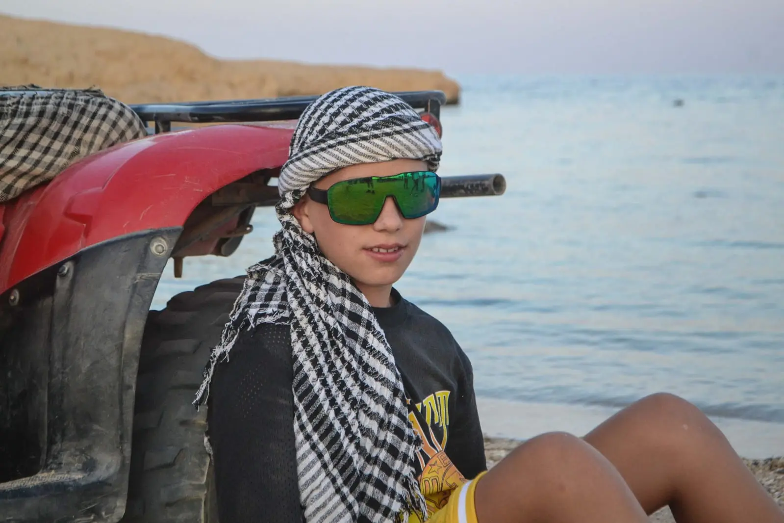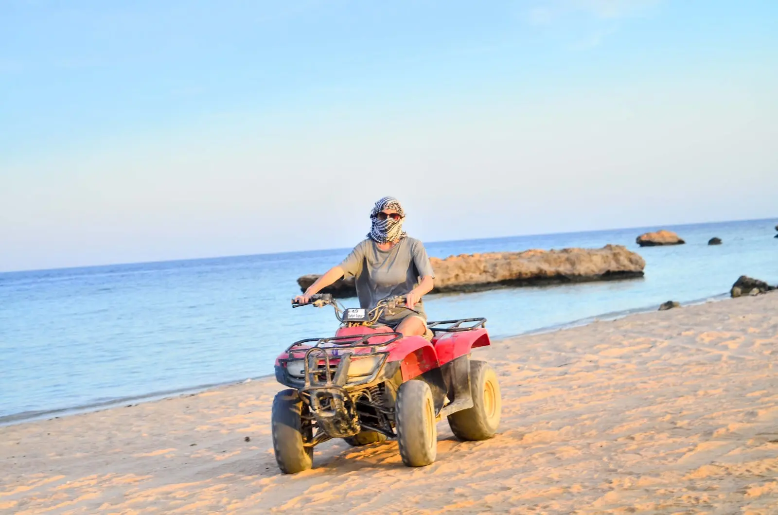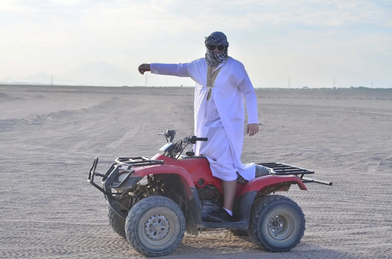 The guest drives the safari quad bike for two full hours in the desert and along the sea.