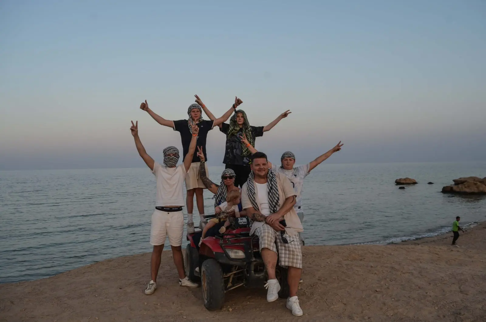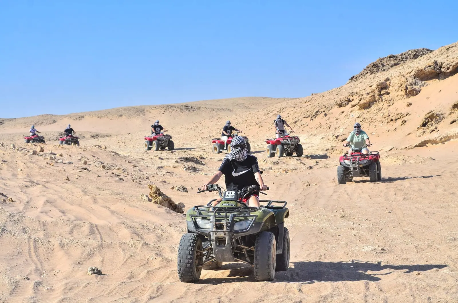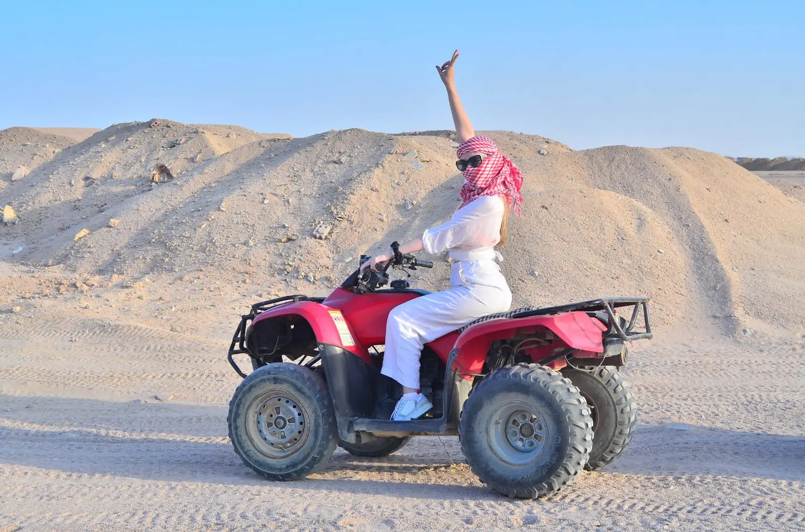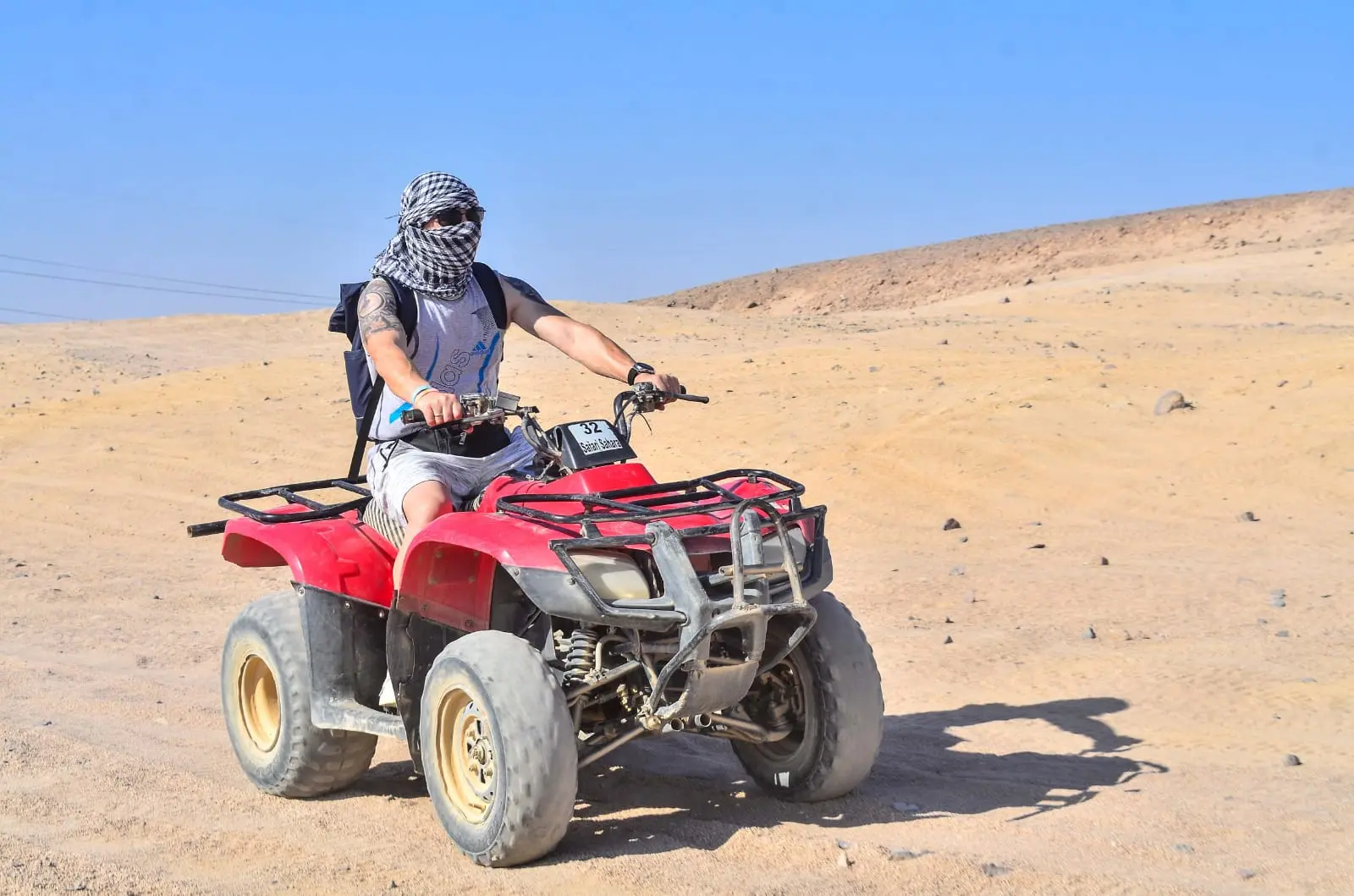 The guest drives the safari quad bike for two full hours in the desert and along the sea.