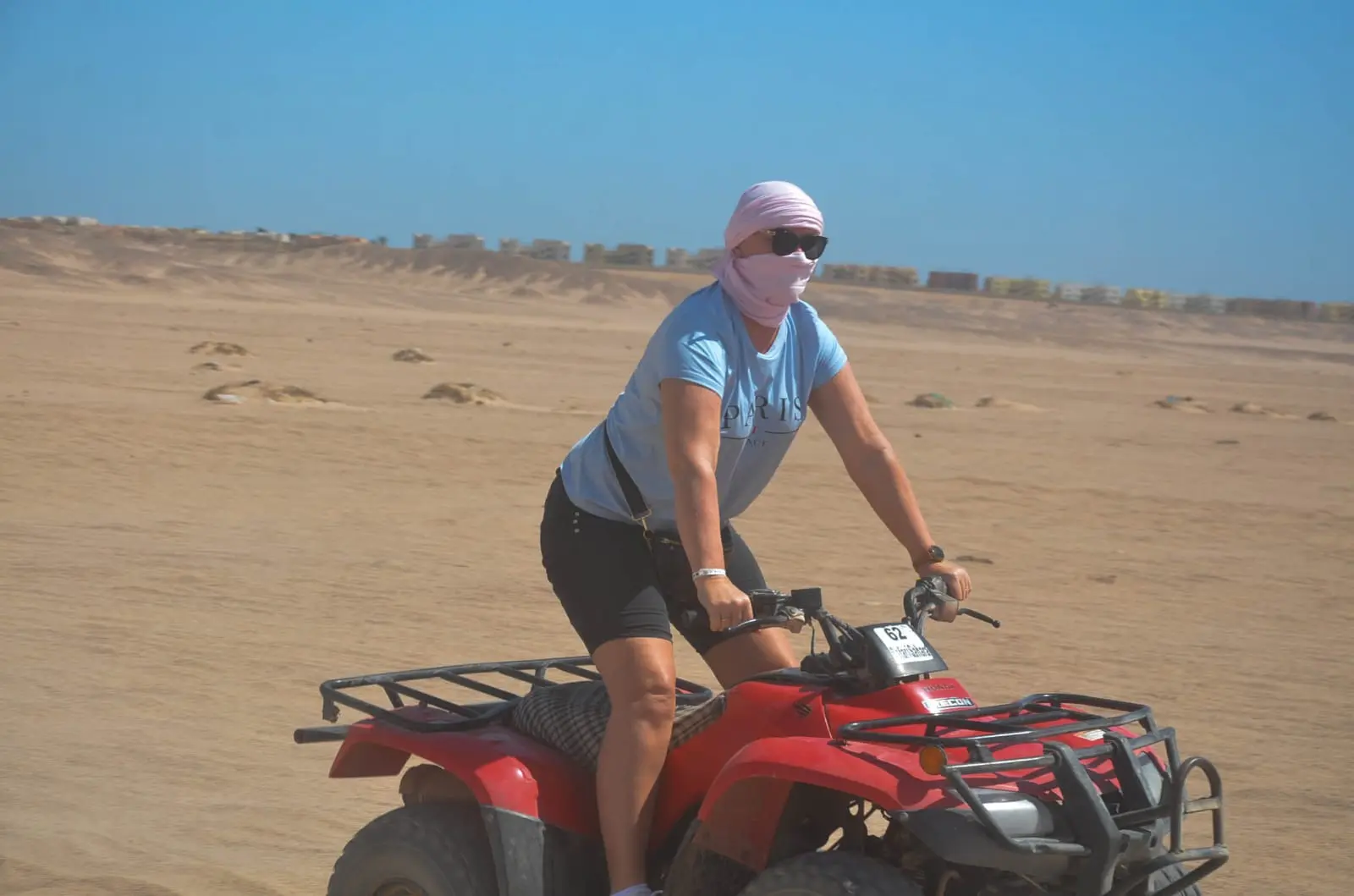 From there, they ride the quad bike (ATV) for 45 minutes, followed by 10 minutes on the beach buggy.